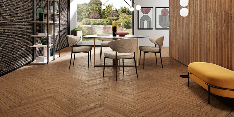- Contrasterende voegen: Gedurfd en grafisch, ideaal om het visgraatpatroon te accentueren.